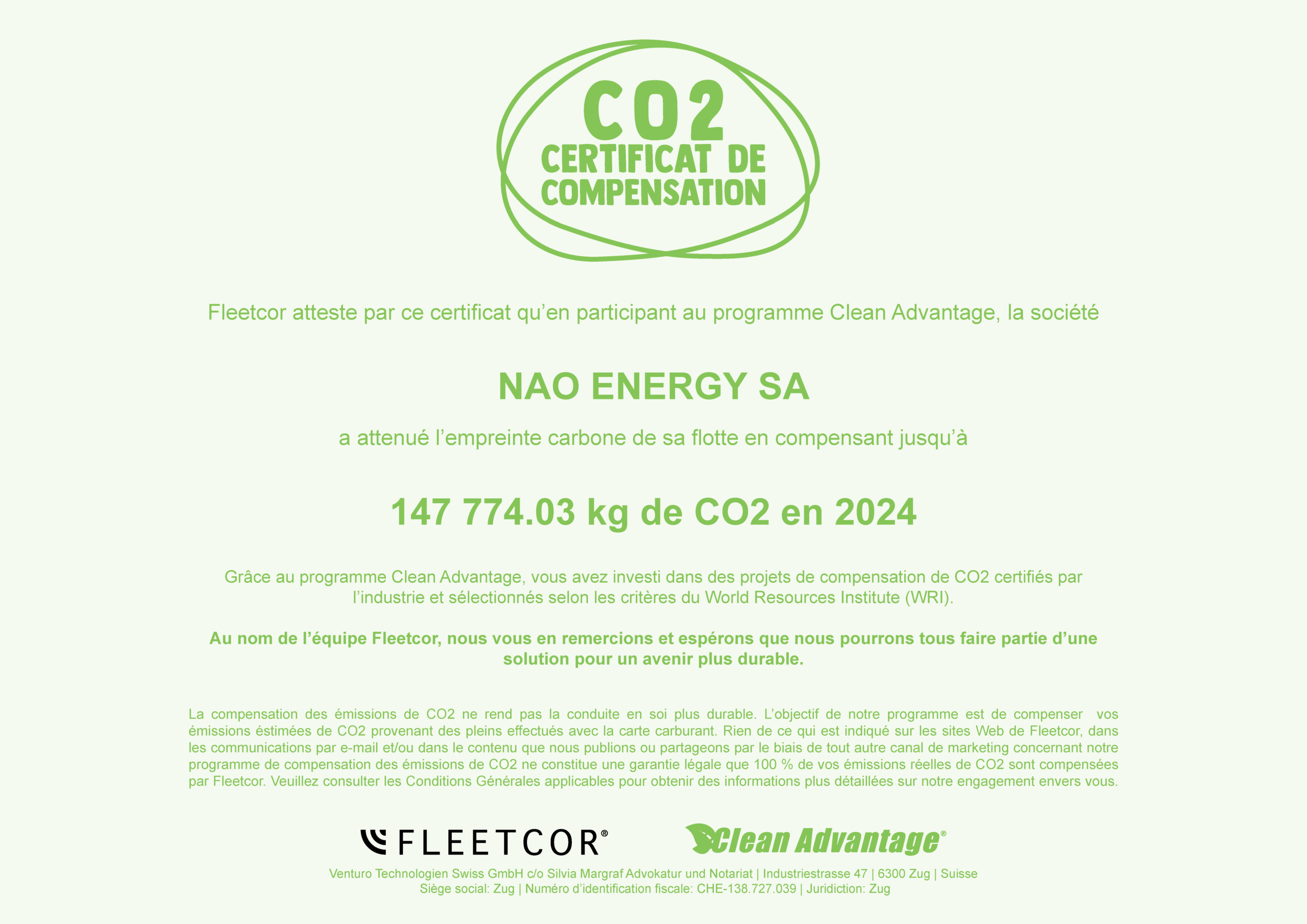 naoenergy est fière de contribuer chaque année au Programme Clean Advantage par Fleetcor.